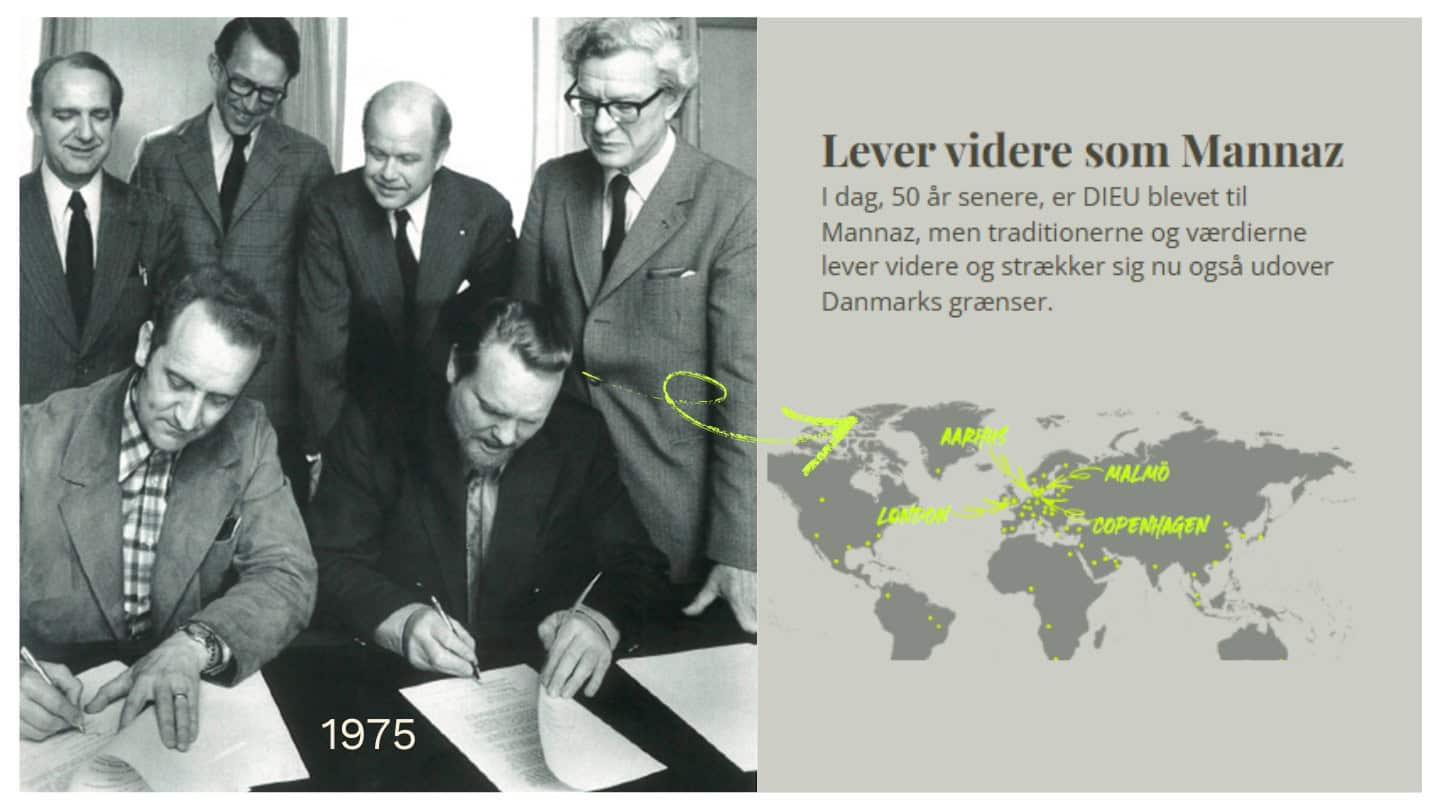 I dag er DIEU en international kompetencevirksomhed. Vi har kontorer i flere lande og vores kundeliste omfatter adskillige af Global 500 virksomhederne. Vi rådgiver om strategisk kompetenceudvikling og vi skræddersyer udviklingsforløb til private og offentlige virksomheder. Vi gennemfører kompetenceudvikling i hele verden – fra Malaysia i øst til Canada i vest. Vi har Danmarks største og mest velrenommerede udbud af kurser, uddannelser og individuelle læringsforløb, hvor deltagere kommer fra ind- og udland, med mange forskellige uddannelsesbaggrunde. Navnet DIEU er derfor ikke længere dækkende for hvem vi er og hvad vi laver. Da DIEU desuden betyder ’Gud’ på fransk, er navnet ikke særlig velegnet i vores voksende internationale marked. Vi har derfor besluttet os for at skifte navn. Vores nye navn er Mannaz.