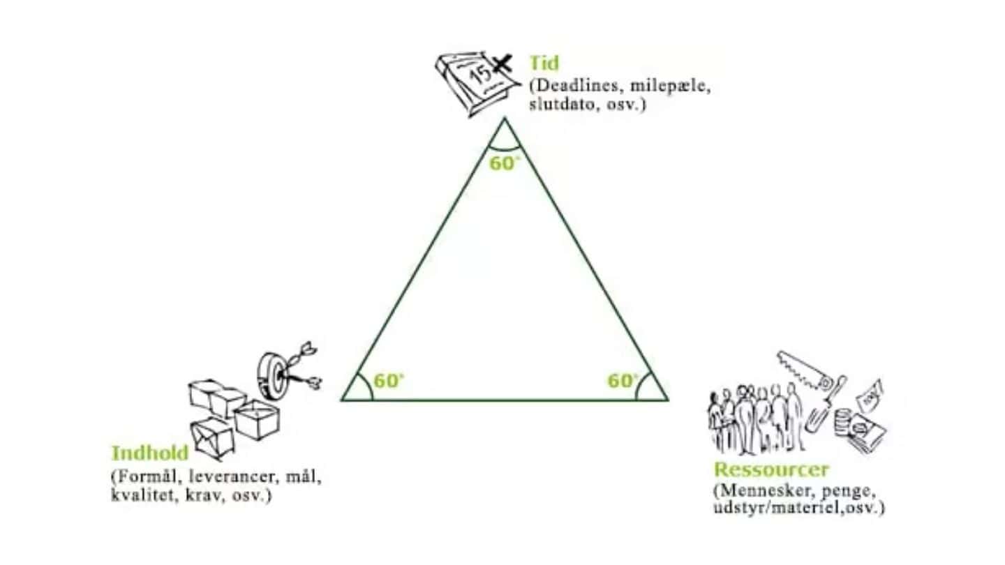 Sagen er den, at hvis du ingen ressourcer får, bliver det aldrig et projekt,” forklarer Henrik Heeris. Får du kun én ressource, skal du udfordre din chef på INDHOLD og TID, for ellers er der ikke balance i trekanten. Skal du levere uforholdsmæssigt meget, kan du kun overholde TID, hvis du får flere RESSOURCER. Og får du tildelt alle de mandetimer, du har brug for, kan du overholde TID, men du sprænger den økonomiske ramme. Projekttrekanten er det værktøj, du skal bruge gennem hele projektet, hver gang interessenter og styregruppe udfordrer dig på enten TID, INDHOLD eller RESSOURCER. ”Stilles der nye krav eller fjernes ressourcer undervejs, skal du ikke acceptere de ændrede omstændigheder, før de har fortalt dig, hvad du så ikke skal lave, eller hvor mange ressourcer du får til at opfylde de nye krav,” tilføjer Henrik Heeris.